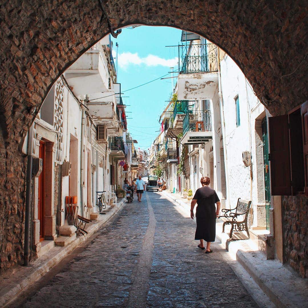 Mesta è pura magia con i suoi vicoli fortificati e le case con torri in pietra, che riecheggiano il patrimonio di Chios ad ogni angolo: un ottimo esempio del carattere autentico che questa isola greca offre. Passeggiando qui, il ticchettio dei miei passi sui ciottoli diventa parte della colonna sonora antica; la mia scoperta preferita è stata un mosaico nascosto vicino alla vecchia piazza del villaggio, un promemoria delle esperienze uniche che aspettano di essere scoperte in qualsiasi punto dell’isola.