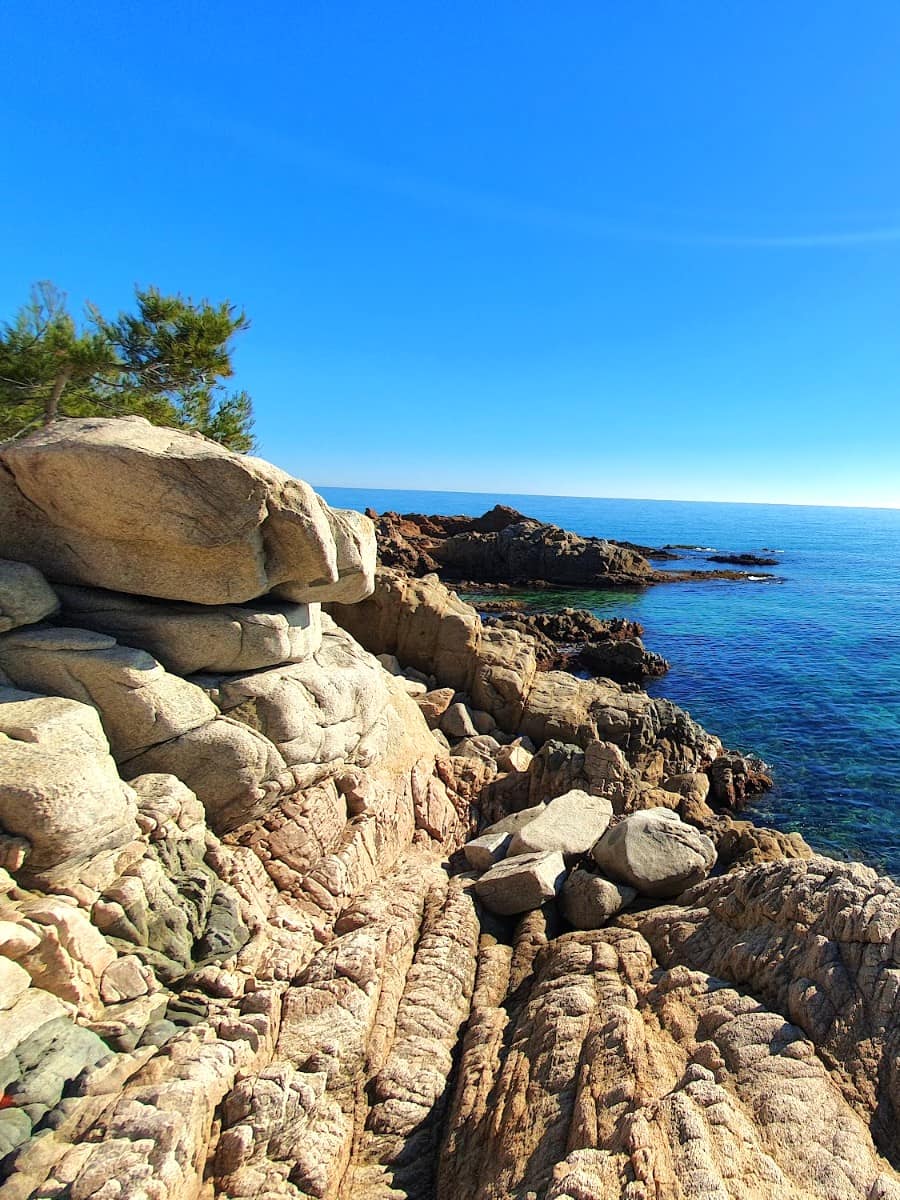 Passeggiate sulla scogliera. Il sentiero Camino de Ronda collegava entrambe le baie attraverso foreste di pini e scogliere rocciose con panorami da cartolina ad ogni curva. Mi ci sono voluti circa 40 minuti a passo lento, con numerose soste per scattare foto lungo il percorso. Il rosmarino selvatico e la lavanda profumavano il sentiero e spesso vedevo lucertole che prendevano il sole sulle rocce calde. Il sentiero passa vicino a punti di riferimento come il Castell de Sant Joan, aggiungendo un tocco di storia al paesaggio naturale.