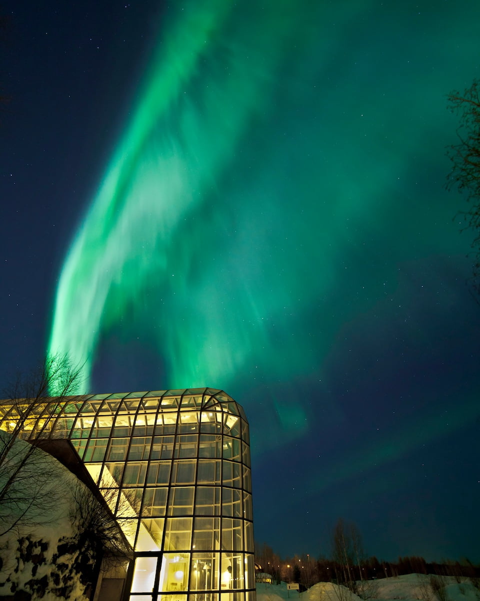 Le zone di Rovaniemi perfette per ammirare l’aurora boreale includono località selvagge e resort situati fuori dal centro città. Indipendentemente da dove alloggiate, le zone selvagge intorno alla città offrono i cieli più bui per osservare l’aurora boreale durante la stagione invernale.