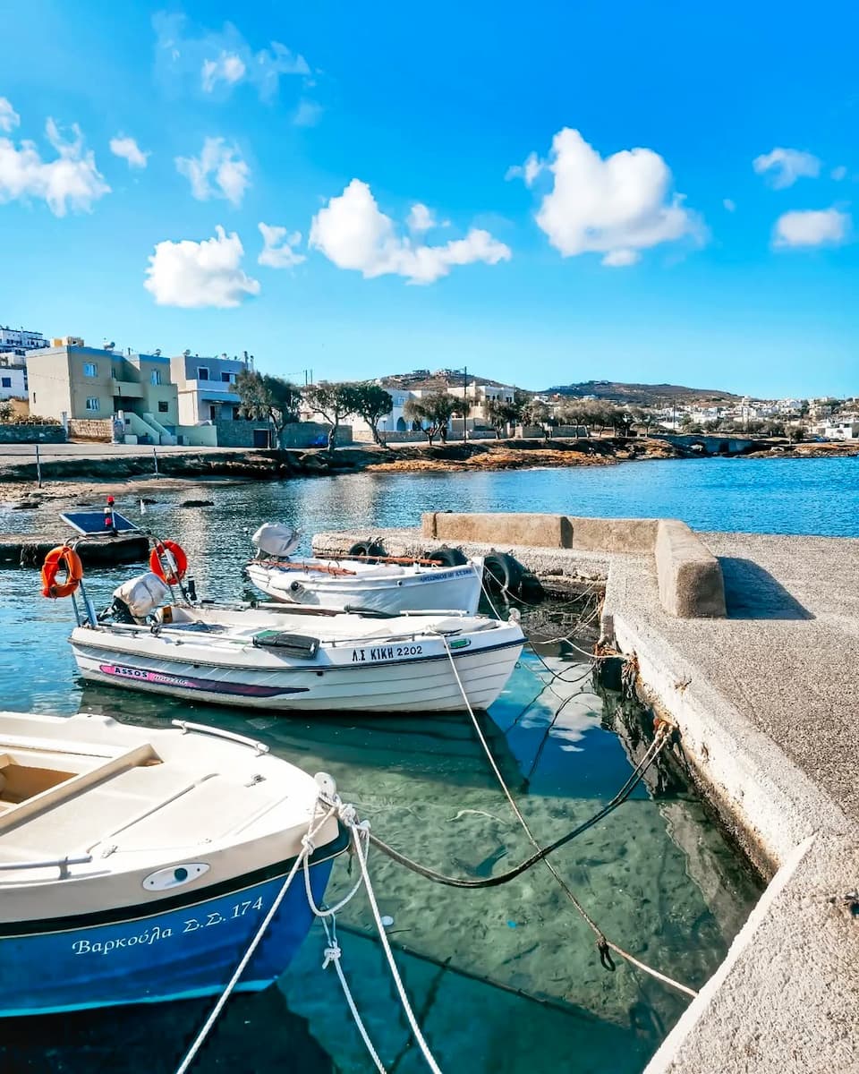 Il fascino di un villaggio di pescatori. Questo posto sembra la Grecia autentica: i pescherecci ondeggiano nel piccolo porto e gli anziani giocano a backgammon al Kafeneio Kinis (aperto dalle 7:00, caffè 2,50 €, caffè greco tradizionale 2 €). Il villaggio conta forse 200 abitanti, quindi tutti conoscono tutti. Ogni mattina intorno alle 8:00 vedrete i pescatori riparare le reti.