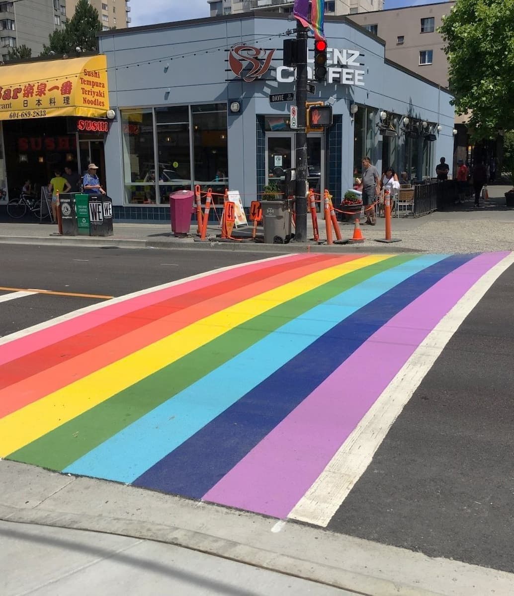 🏳️🌈 LGBTQ+ Hub: Una delle aree più trendy di Vancouver, sede del villaggio gay della città, incentrato su Davie Street. Troverete strisce pedonali arcobaleno, attività commerciali LGBTQ+ e un’atmosfera accogliente e inclusiva. Il West End è anche uno dei luoghi più cool di Vancouver, con un mix eterogeneo di abitanti e visitatori.